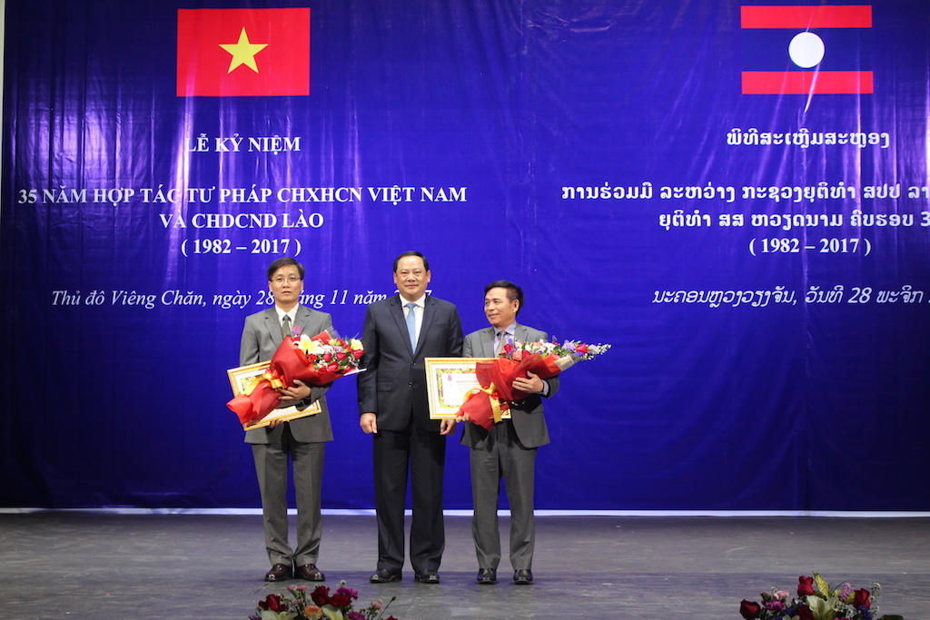Tại buổi lễ, các cá nhân, tập thể có thành tích đóng góp cho quan hệ hợp tác pháp luật và tư pháp Việt Nam – Lào đã được trao tặng huân, huy chương, Kỷ niệm chương vì sự nghiệp tư pháp.