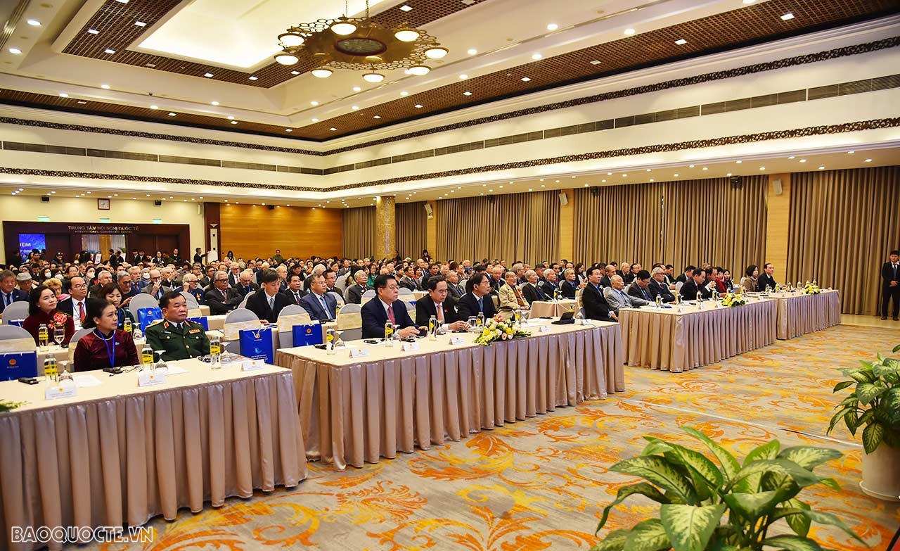 Cùng tham dự có các lãnh đạo, nguyên lãnh đạo Đảng, Nhà nước, lãnh đạo các ban, bộ, ngành, các cán bộ thành viên Đoàn đàm phán, cán bộ tham gia đấu tranh ngoại giao tại Hội nghị Paris và đông đảo các đại biểu trong nước và quốc tế.
