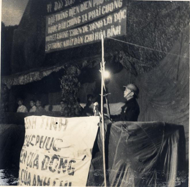 | Đại tướng Tổng Tư lệnh Võ Nguyên Giáp đọc Nhật lệnh trong buổi lễ chiến thắng năm 1954 |