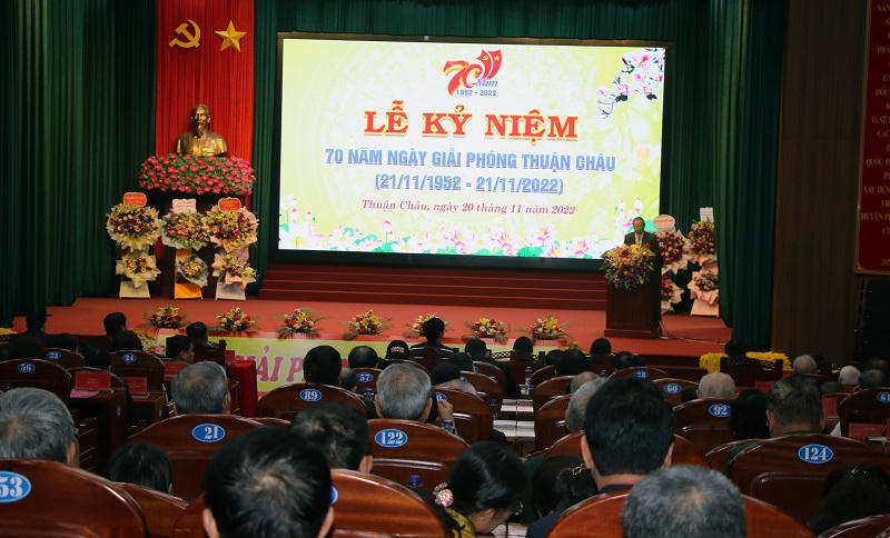 Phát biểu tại buổi lễ, ông Lò Minh Hùng, Phó Bí thư Thường trực Tỉnh ủy Sơn La biểu dương sự nỗ lực và những thành tích mà Đảng bộ, chính quyền, nhân dân các dân tộc huyện Thuận Châu đã đạt được trong suốt chặng đường đấu tranh, xây dựng và phát triển. Đồng thời, đề nghị huyện tiếp tục lãnh đạo, chỉ đạo thực hiện các đề án, nghị quyết, kết luận của Ban Thường vụ tỉnh ủy và Nghị quyết Đại hội Đảng bộ tỉnh và huyện đã đề ra; đẩy mạnh đầu tư phát triển kinh tế nông nghiệp, phát triển cây ăn quả, cây công nghiệp gắn với công nghiệp chế biến; phát triển chăn nuôi đại gia súc.