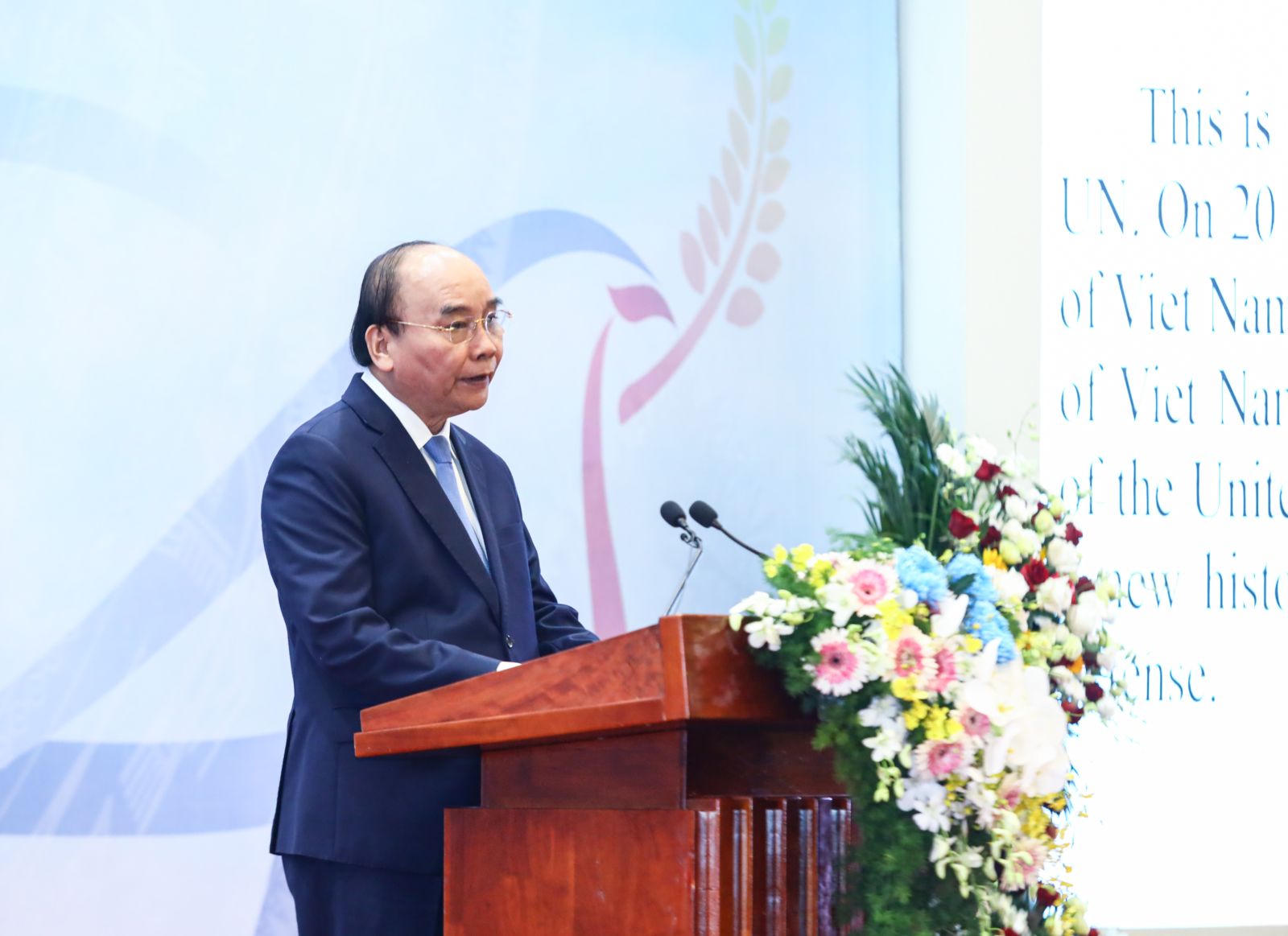 Chủ tịch nước Nguyễn Xuân Phúc bày tỏ tri ân đối với sự đồng hành của LHQ và cộng đồng quốc tế trên mỗi bước đường phát triển của đất nước trong suốt 45 năm qua.