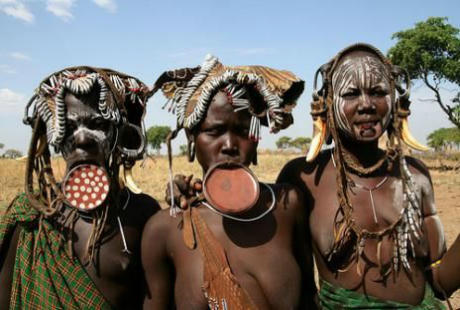 Hiện nay, bộ tộc người Mursi sinh sống trong thung lũng Omo, cách thủ đô Addis Ababa của Ethiopia 1.840 km. Theo ước tính, có xấp xỉ 10.000 người thuộc bộ lạc Mursi ở Ethiopia ngày nay. Phụ nữ ở đây có tục lệ rất lạ là đeo những chiếc đĩa dưới môi dưới. Khoảng tầm 15-16 tuổi, các cô gái ở đây sẽ được những người thân giúp đỡ khoét môi.