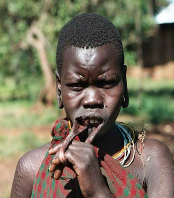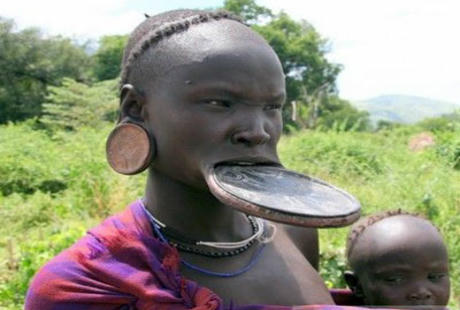 Kỳ quái tục lệ đeo đĩa môi ở bộ tộc châu Phi