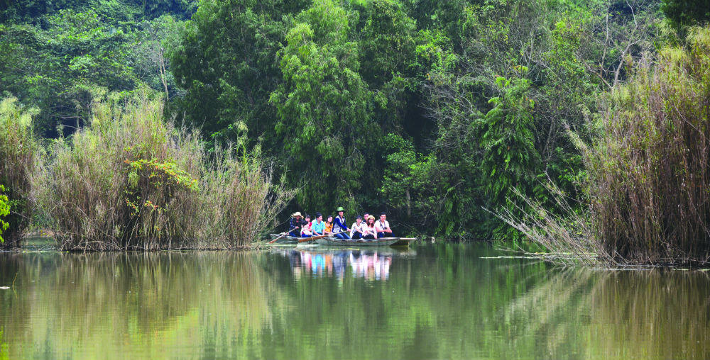 Nếu đi thuyền để ngắm chim, du khách sẽ bắt gặp nhiều đàn vịt trời, le le và các loài chim khác ở khoảng cách gần hơn. Đi trên thuyền chúng ta như được lạc vào khung cảnh hữu tình của vùng non nước. Thỉnh thoảng con thuyền nhỏ của dân bản địa lại đưa ta đi xuyên qua một eo núi nhỏ rất độc đáo.