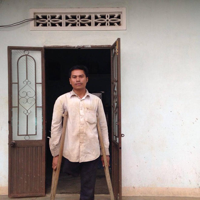 Đặt vội đôi nạng gỗ xuống đất, mở cửa mời khách vào nhà, anh Bót nói: “Sáng nào cũng vậy, mình đùm cơm mang theo đi làm thuê cho họ, chiều tối mới về. Thời gian này, đang là mùa khô chưa xuống giống vụ mới được, mình tranh thủ đi làm thuê kiếm ít tiền chi tiêu trong gia đình”.
