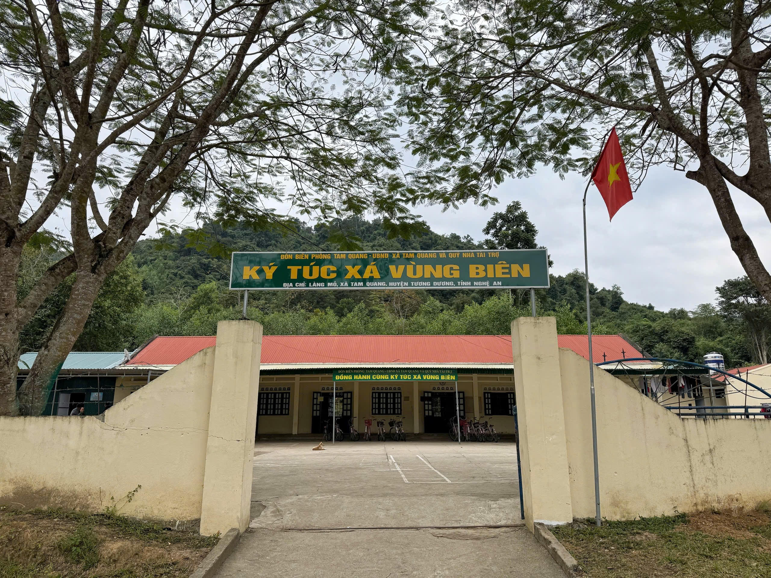 Từ xã Môn Sơn ngược QL7A hơn 50 km, chúng tôi có mặt tại xã Tam Quang (huyện Tương Dương). Đây là địa điểm thứ hai mà Bộ đội Biên phòng Nghệ An thực hiện mô hình “Ký túc xá vùng biên”. Mô hình được đưa vào sử dụng đúng dịp khai giảng năm học mới 2024 - 2025, đã giúp 46 em học sinh người đồng bào Thái, Khơ Mú, Tày Pọng có một điểm tựa để chuyên tâm học tập.