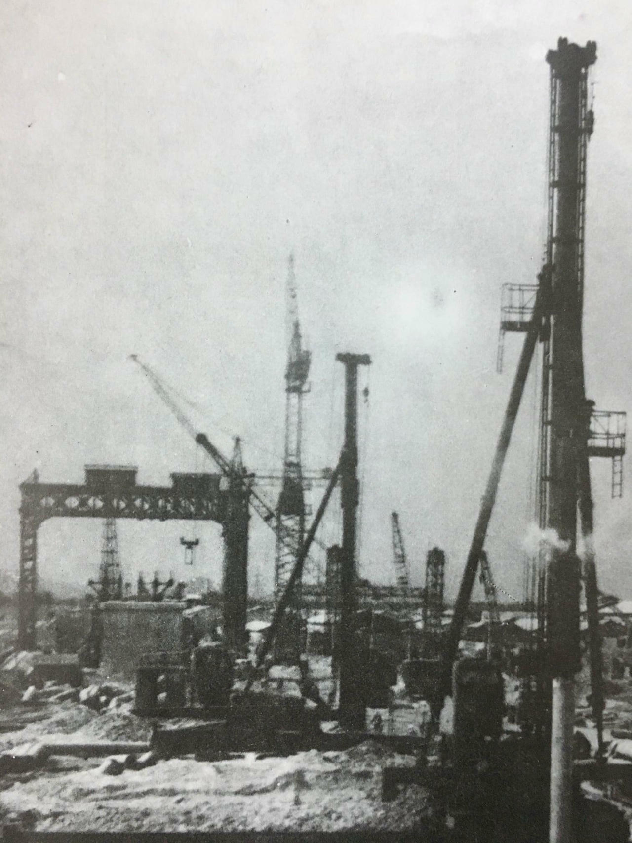 Hình ảnh ngổn ngang của công trình cầu Thăng Long năm 1980. |