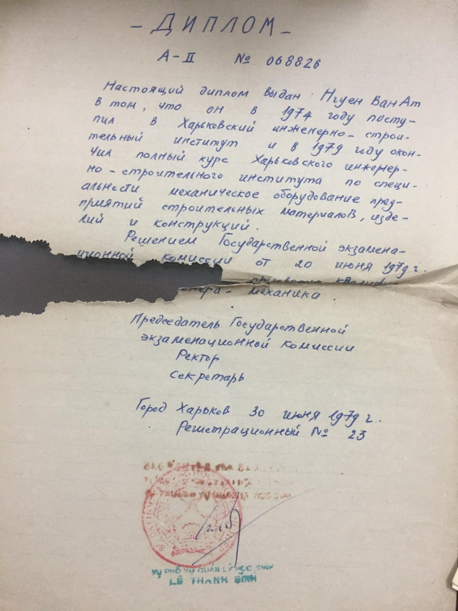 Tấm bằng tốt nghiệp ở “Tây” về được sao ra “công chứng” nộp cơ quan. Thời 1979 bản “công chứng” của ta là như thế này. |