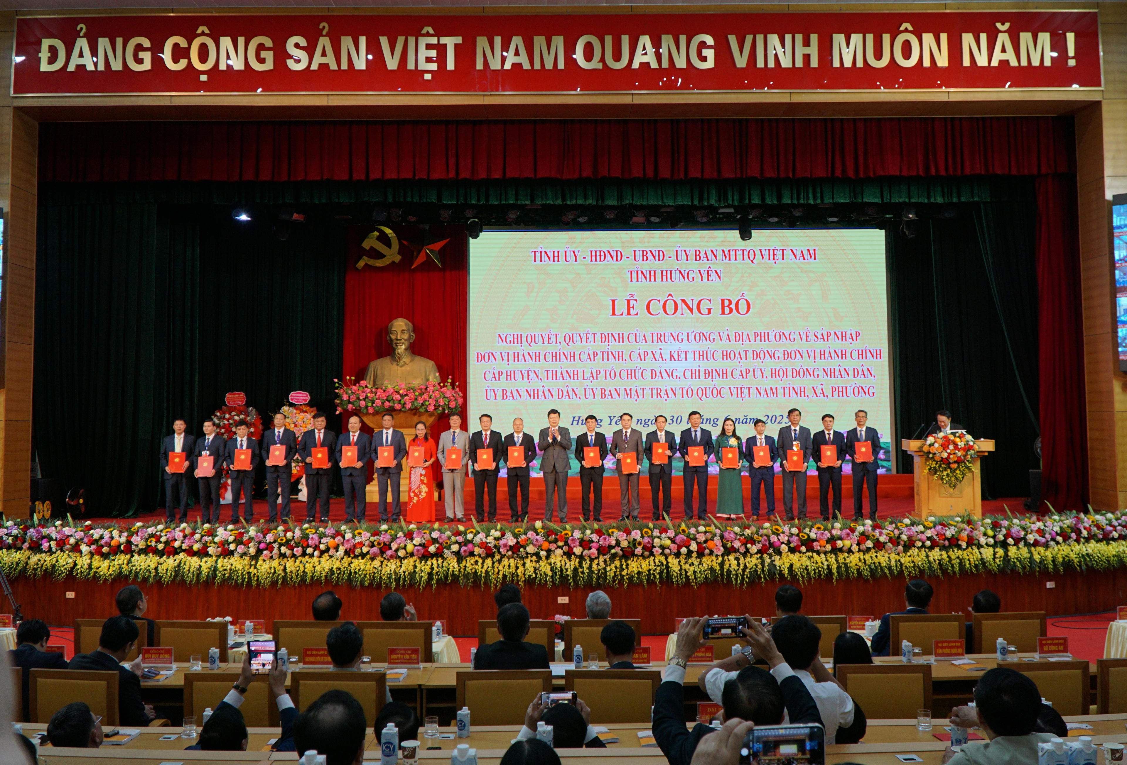 Trong khuôn khổ buổi lễ, các quyết định về tổ chức đảng, HĐND, UBND và MTTQ Việt Nam tại cấp xã, phường của tỉnh Hưng Yên đã được công bố, bảo đảm bộ máy chính quyền mới được kiện toàn đồng bộ, sẵn sàng phục vụ người dân ngay từ ngày đầu vận hành.
