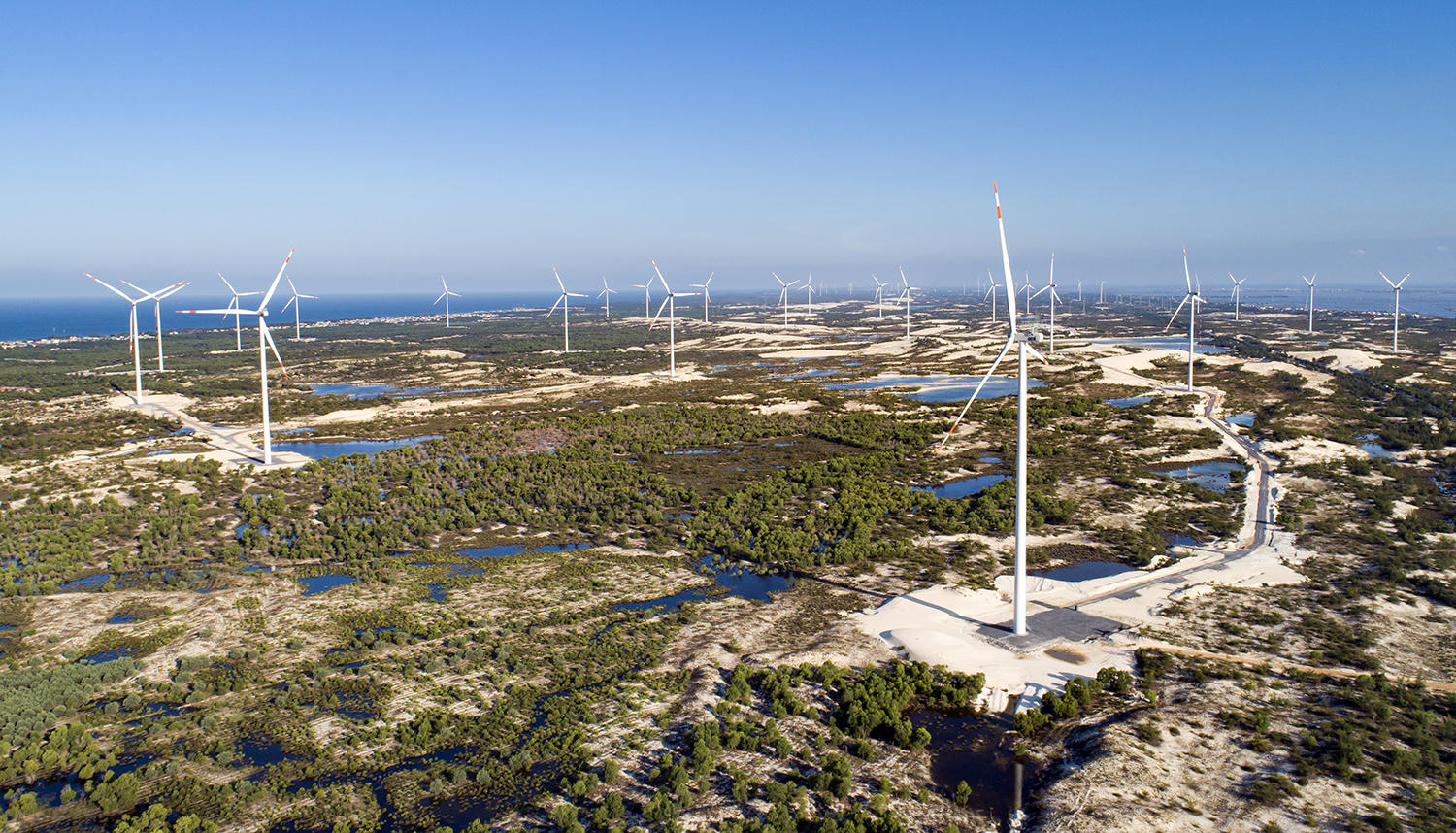 Những đồi cát trắng nắng cháy năm nào nay hình thành những trụ điện gió sừng sững vươn cao, góp phần tạo nguồn thu ngân sách lớn cho Quảng Bình. |