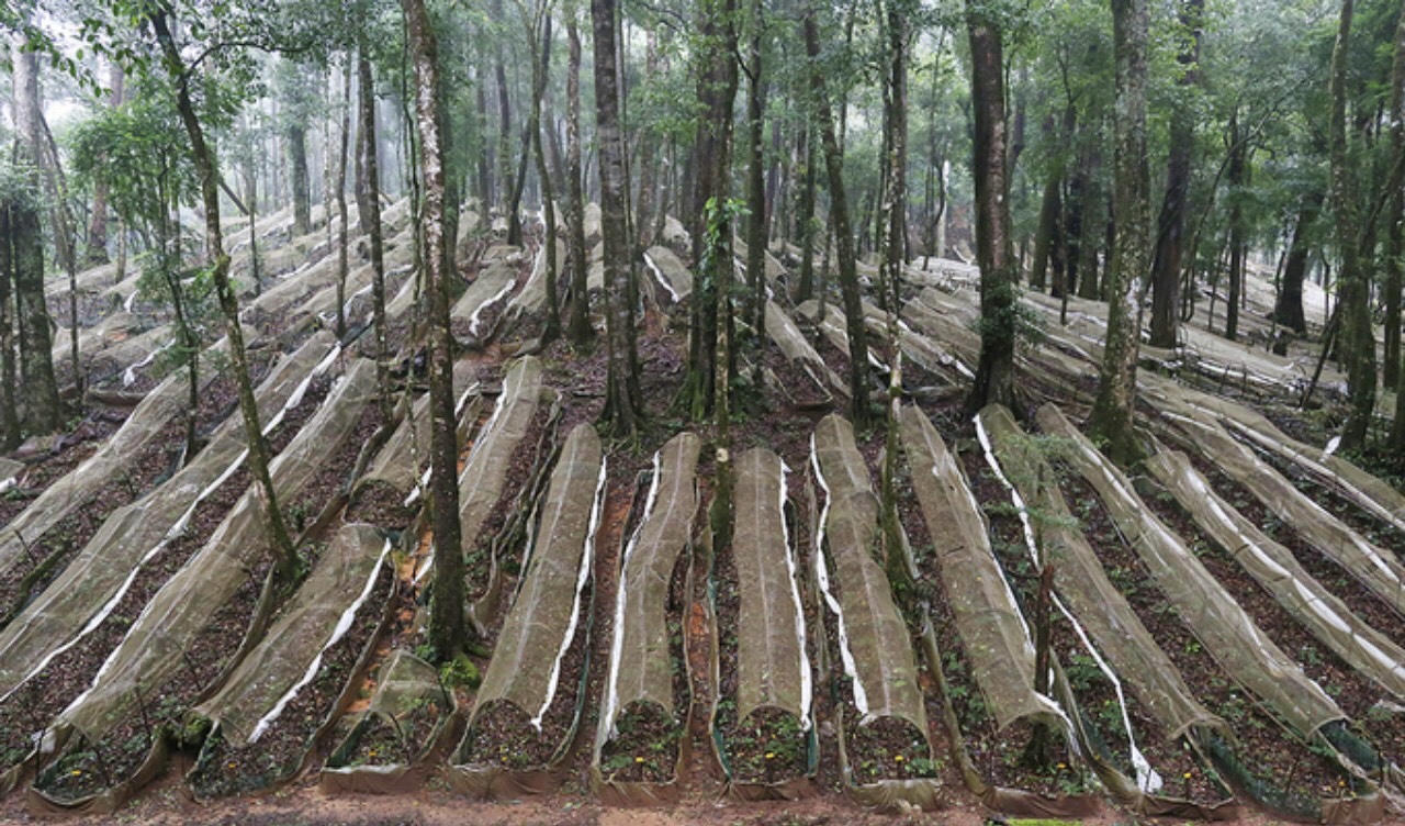 Vườn ươm sâm Ngọc Linh ở độ cao trên 1.000m so với mực nước biển. |