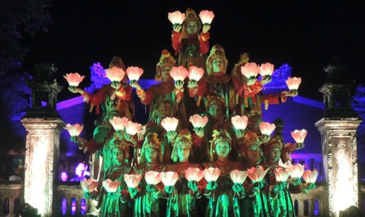 Lạ lẫm áo dài Huế thướt tha giữa đình làng trong đêm