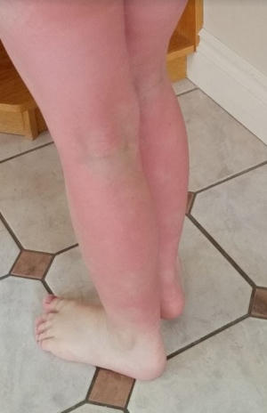 "Thông thường ai đó mắc chứng bệnh này sẽ bị ngứa ngáy, phát ban, đôi khi da phồng lên nếu gặp nước”, mẹ của Benjamin nói. “Các mảng đỏ xuất hiện ở khắp ngực, lưng, mặt và cổ”.