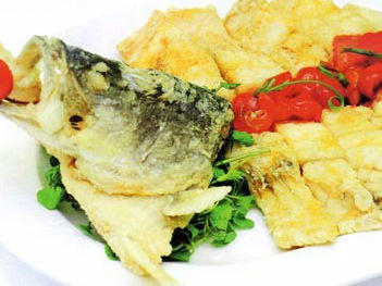 Làm sạch cá chẽm, lọc lấy phần thịt phile. Giữ lại phần đầu và đuôi. Rửa sơ phile cá chẽm với rượu trắng để khử mùi, để ráo. Cắt phile cá chẽm thành lát mỏng.