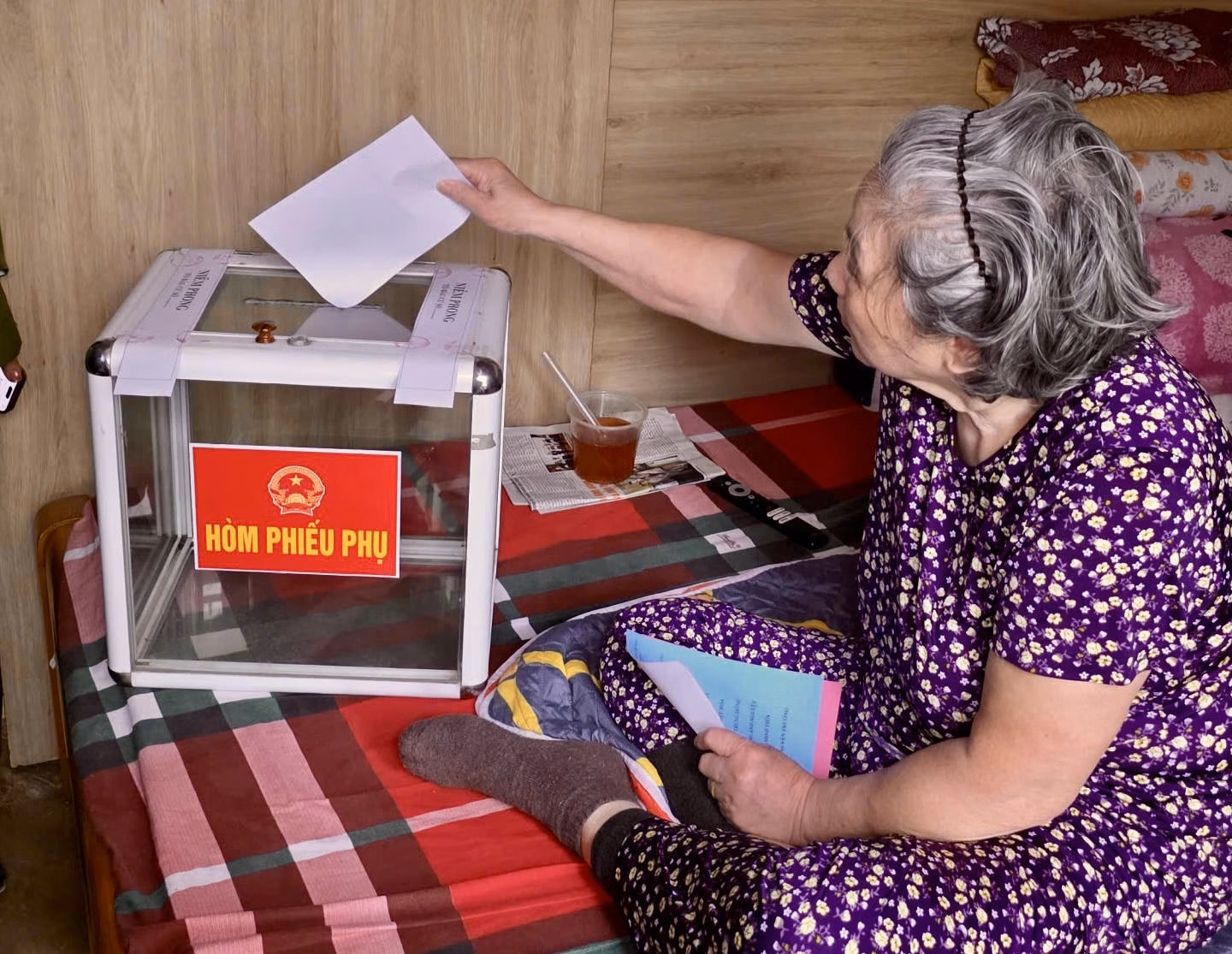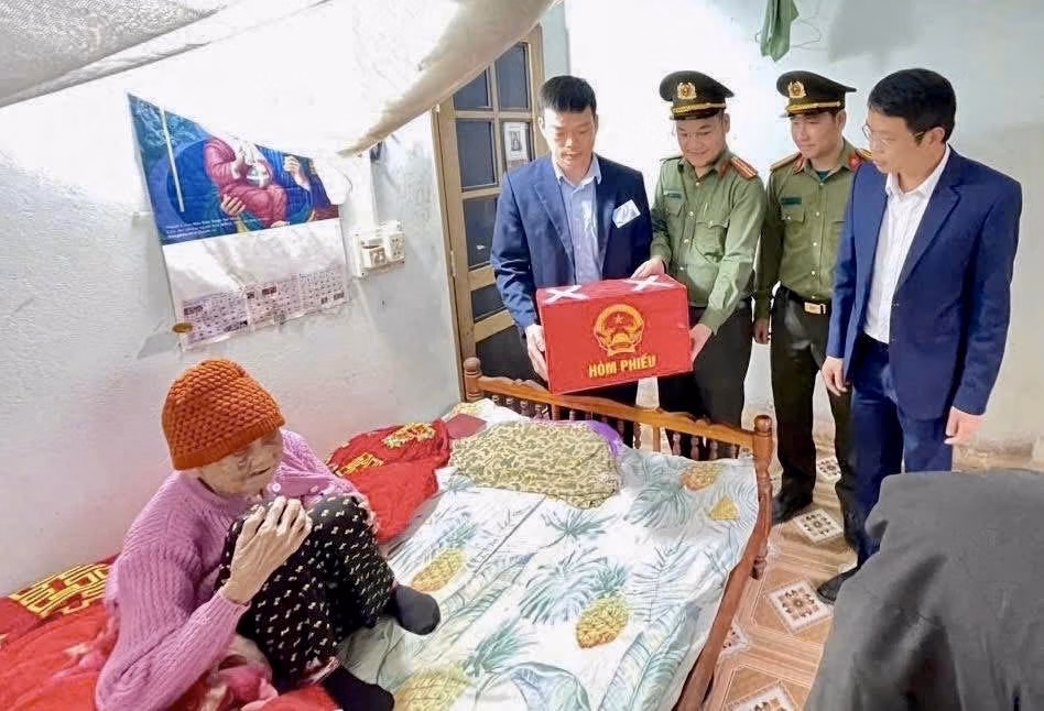 Đối với những cử tri không thể trực tiếp đến điểm bỏ phiếu do sức khỏe, các tổ bầu cử lưu động đã thể hiện tinh thần nhân văn sâu sắc khi mang hòm phiếu đến tận nơi.