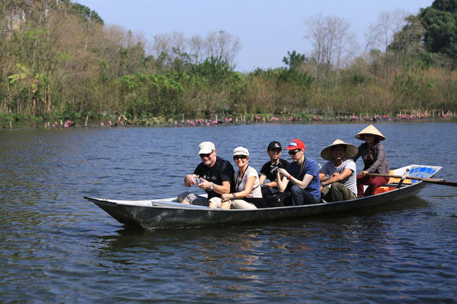 Mùa này thi thoảng bạn mới gặp một chiếc thuyền chở du khách đi thăm thú chùa Hương, chủ yếu là người nước ngoài và người miền Nam. Ảnh: Vũ Minh Quân