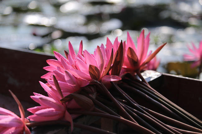 Những bông súng còn được hái về để làm rau ăn lẩu. Ảnh: Ngoc A. Hoang