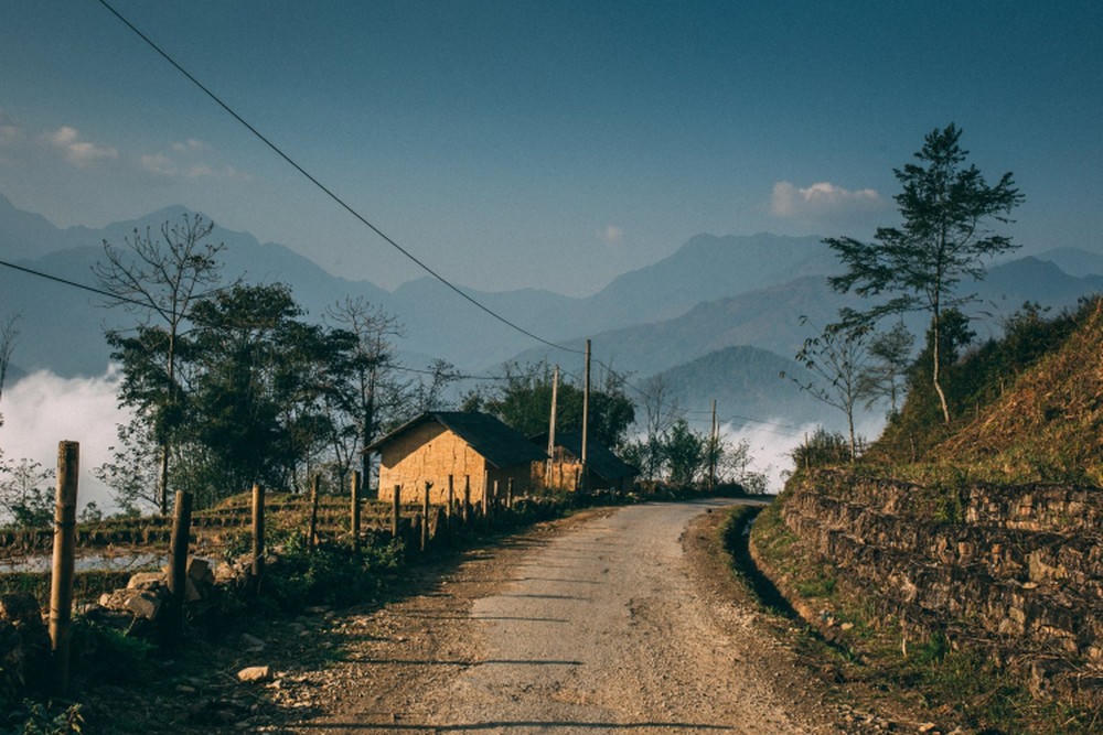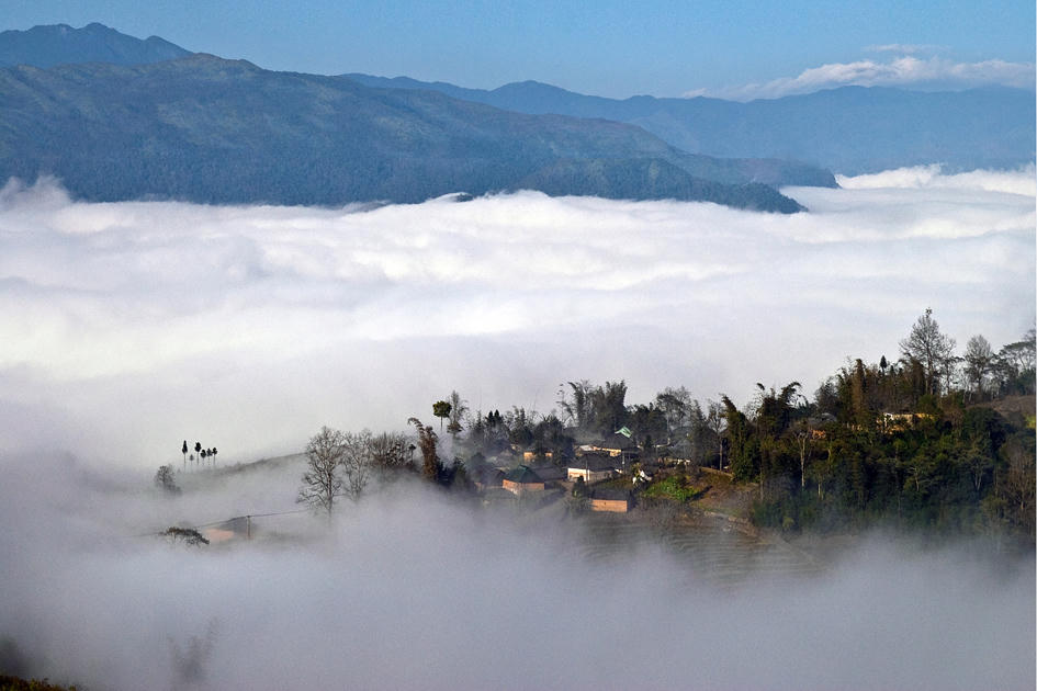 Những ngôi nhà nhỏ thấp thoáng trong mây