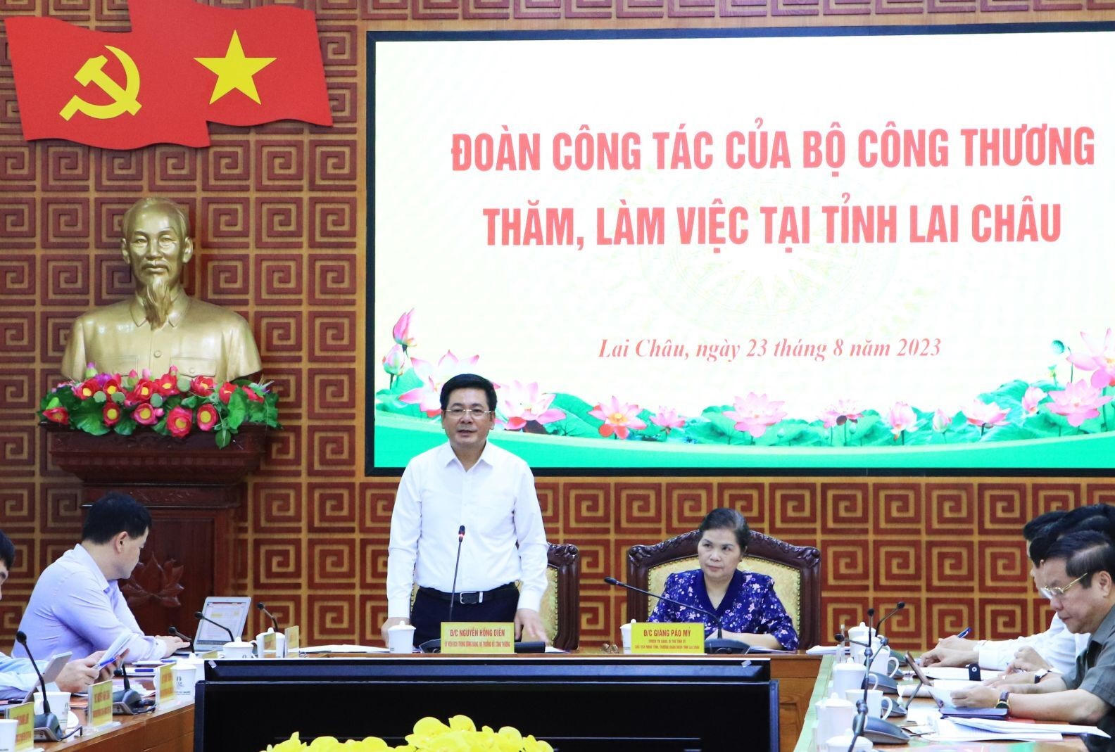 (PLVN) - Sáng ngày 23/08, Đoàn công tác của Bộ Công Thương do Bộ trưởng Nguyễn Hồng làm Trưởng đoàn đã có buổi làm việc với tỉnh Lai Châu về giải pháp thúc đẩy sản xuất kinh doanh trong lĩnh vực công thương trên địa bàn tỉnh.
