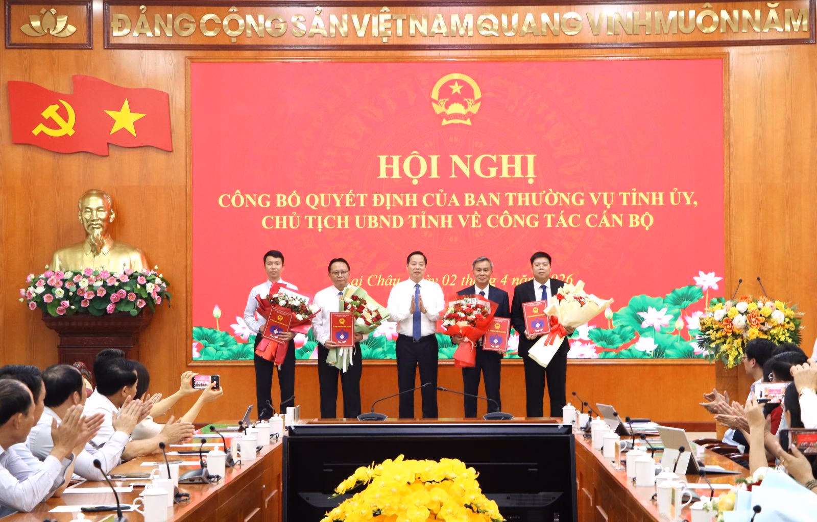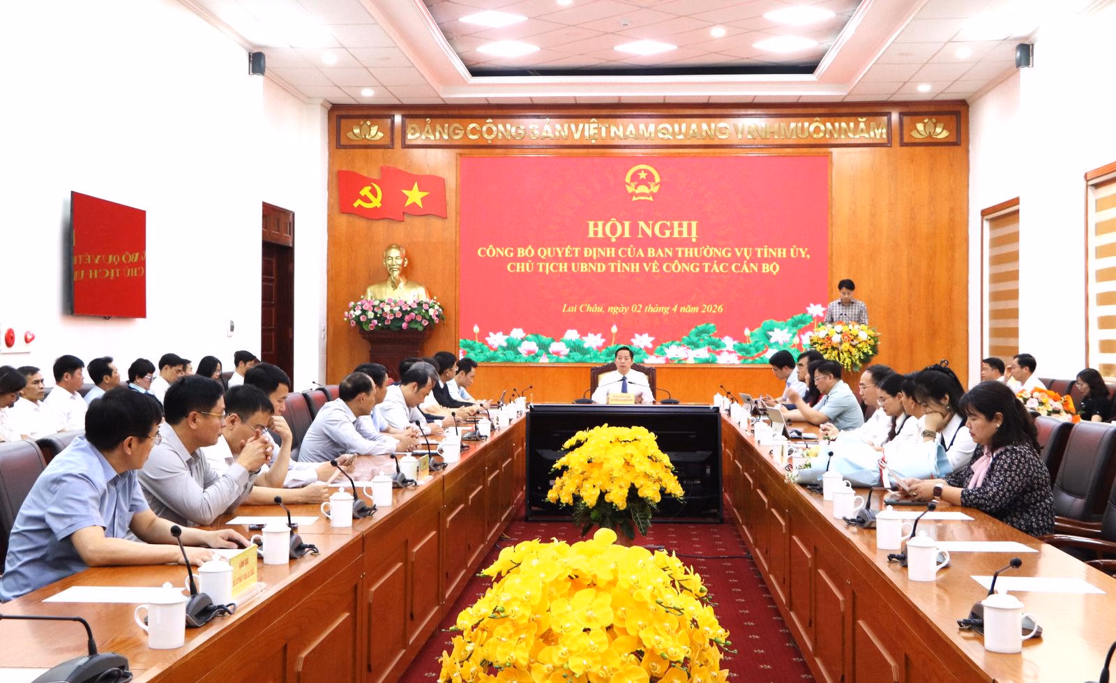 Chiều 2/4, UBND tỉnh Lai Châu tổ chức hội nghị công bố quyết định của Ban Thường vụ Tỉnh ủy, Chủ tịch UBND tỉnh về công tác cán bộ.