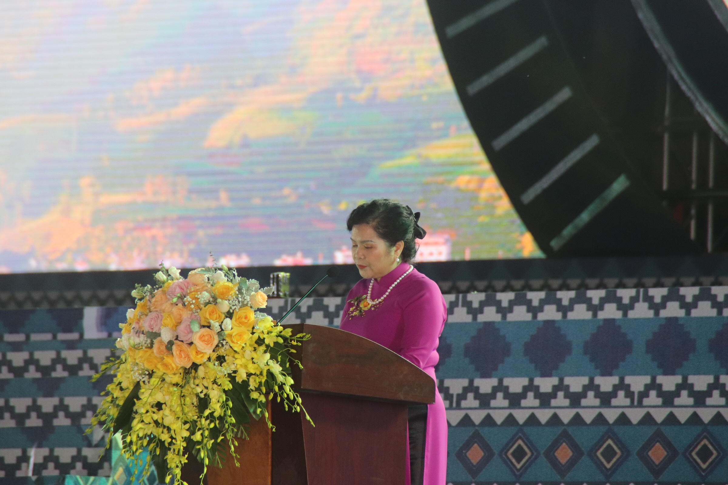 Thay mặt Đảng bộ, chính quyền và nhân dân các dân tộc tỉnh Lai Châu, bà Giàng Páo Mỷ - Bí thư Tỉnh ủy bày tỏ lòng tri ân tới Đảng và Nhà nước, các bộ, ngành, các tỉnh đã quan tâm, sát cánh cùng tỉnh Lai Châu ngày càng phát triển.