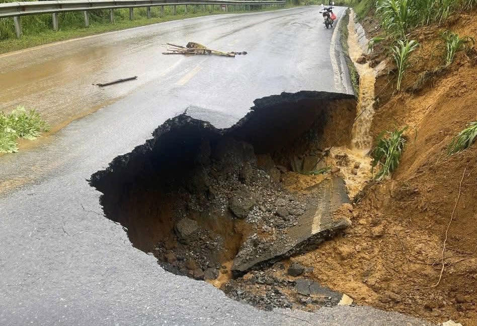 Theo thông tin từ Công an tỉnh Lai Châu, từ đêm 19/5 đến rạng sáng 20/5, do ảnh hưởng của mưa vừa đến mưa rất to, tại Km 25+300 Quốc lộ 4D (thuộc bản Hồng Thu, xã Lản Nhì Thàng, huyện Phong Thổ) đã xảy ra tình trạng sạt lở nghiêm trọng khiến mặt đường bị lún, sạt, tiềm ẩn nguy cơ tai nạn giao thông.