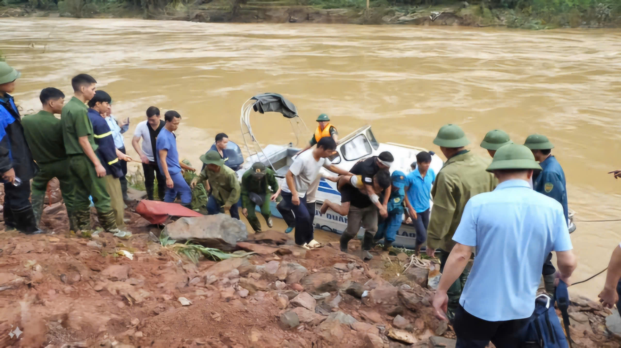 Tại hiện trường, các đơn vị khẩn trương triển khai công tác cứu hộ, cứu nạn, tìm kiếm người mất tích.