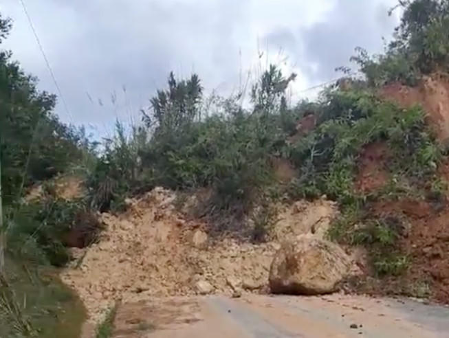 Ông Trần Duy Dũng, Chủ tịch UBND huyện Nam Trà My xác nhận, tuyến quốc lộ 40B bị sạt lở khiến hàng trăm khối đất đá đổ xuống, chia cắt giao thông.