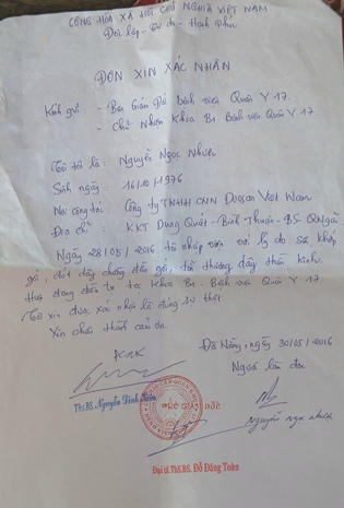 “Khi nhập viện đa khoa Đà Nẵng, nhiều bác sỹ ở bệnh viện này tiến hành hội chẩn cho chồng tôi. Bác sỹ Thái nói chồng tôi bị dập chân, mạch máu bị tắc, hoại tử. Khoảng 23 giờ cùng ngày, chồng tôi được đưa đi làm phẫu thuật cắt bỏ chân”, lời chị Thắm nói .