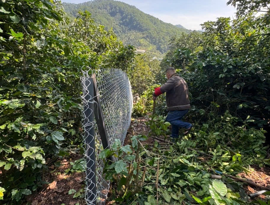 Lực lượng chức năng cắm mốc bàn giao tài sản cho người được thi hành án. |