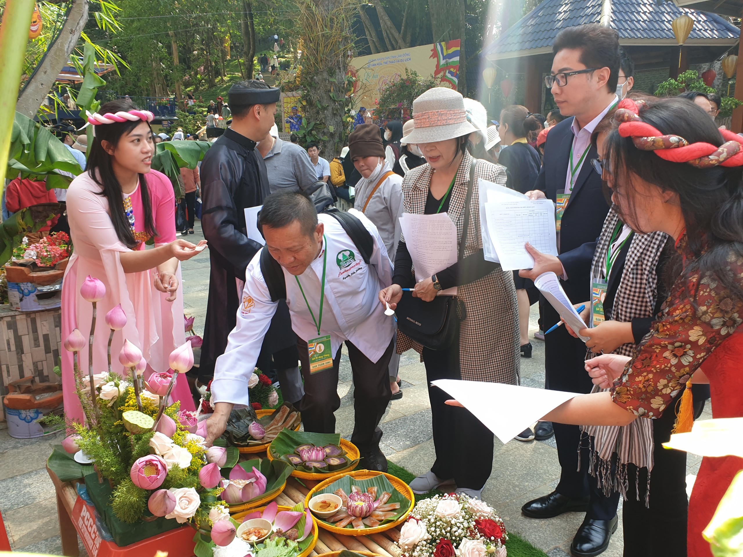 Ban tổ chức chấm điểm gian hàng ẩm thưc. |