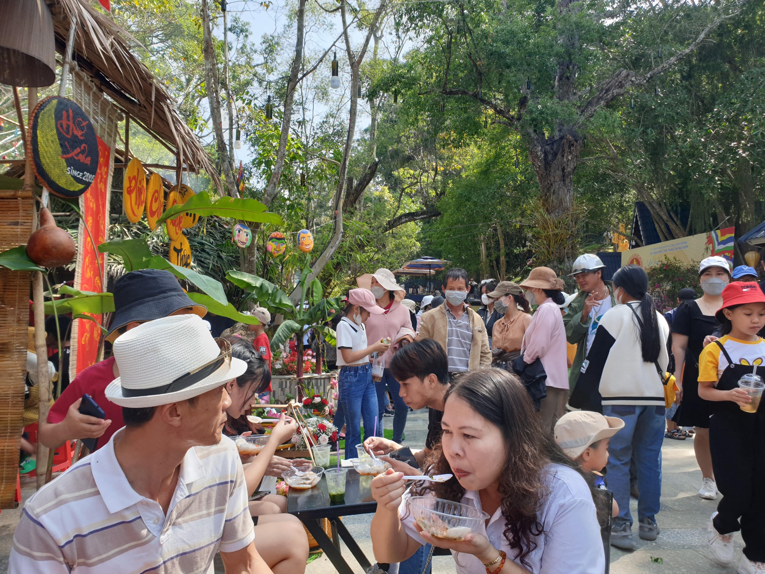 Các gian hàng ẩm thực thu hút du khách, người dân. |