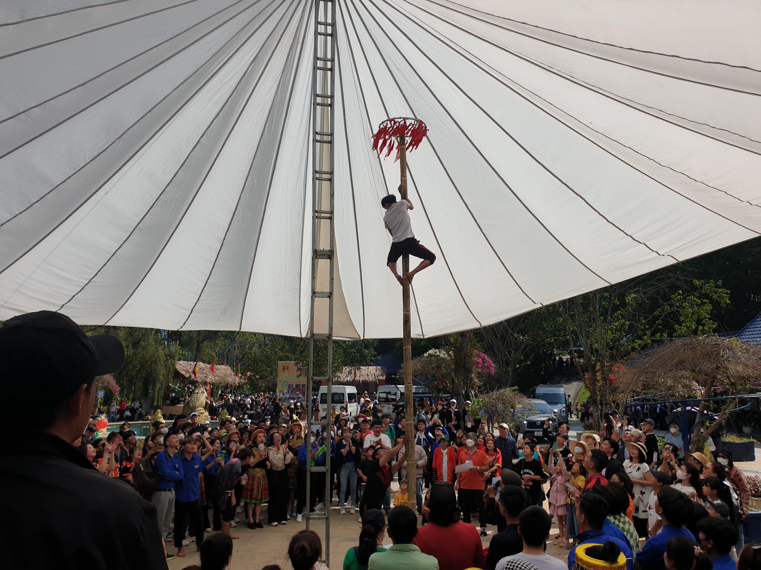 Cuộc thi trèo cột mỡ hấp dẫn không kém. |