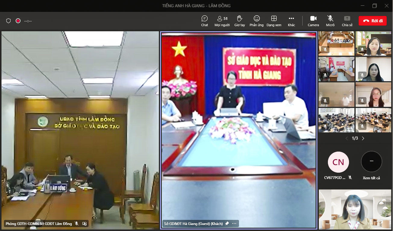 Để triển khai chủ trương trên, Sở GD&ĐT tỉnh Lâm Đồng và Sở GD&ĐT tỉnh Hà Giang vừa tổ chức cuộc họp trực tuyến để triển khai kế hoạch. Tham dự cuộc họp có lãnh đạo Sở GD&ĐT, lãnh đạo Phòng GD&ĐT các huyện, cán bộ quản lý, giáo viên Tiếng Anh… của 2 tỉnh.