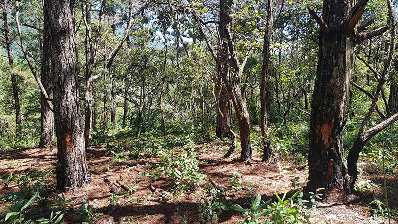 Tại hiện trường, có 50 cây thông 3 lá (thuộc nhóm IV), đường kính gốc từ 25cm - 58cm đã bị kẻ gian đẽo gốc và đổ hóa chất vào gốc khiến cho số thông này bị vàng lá dần chết đứng, trong đó 8 cây đã chết, 3 cây bị đốn hạ từ lâu. Tổng diện tích rừng bị phá 5.457m2, trữ lượng lâm sản thiệt hại 40,909m3.