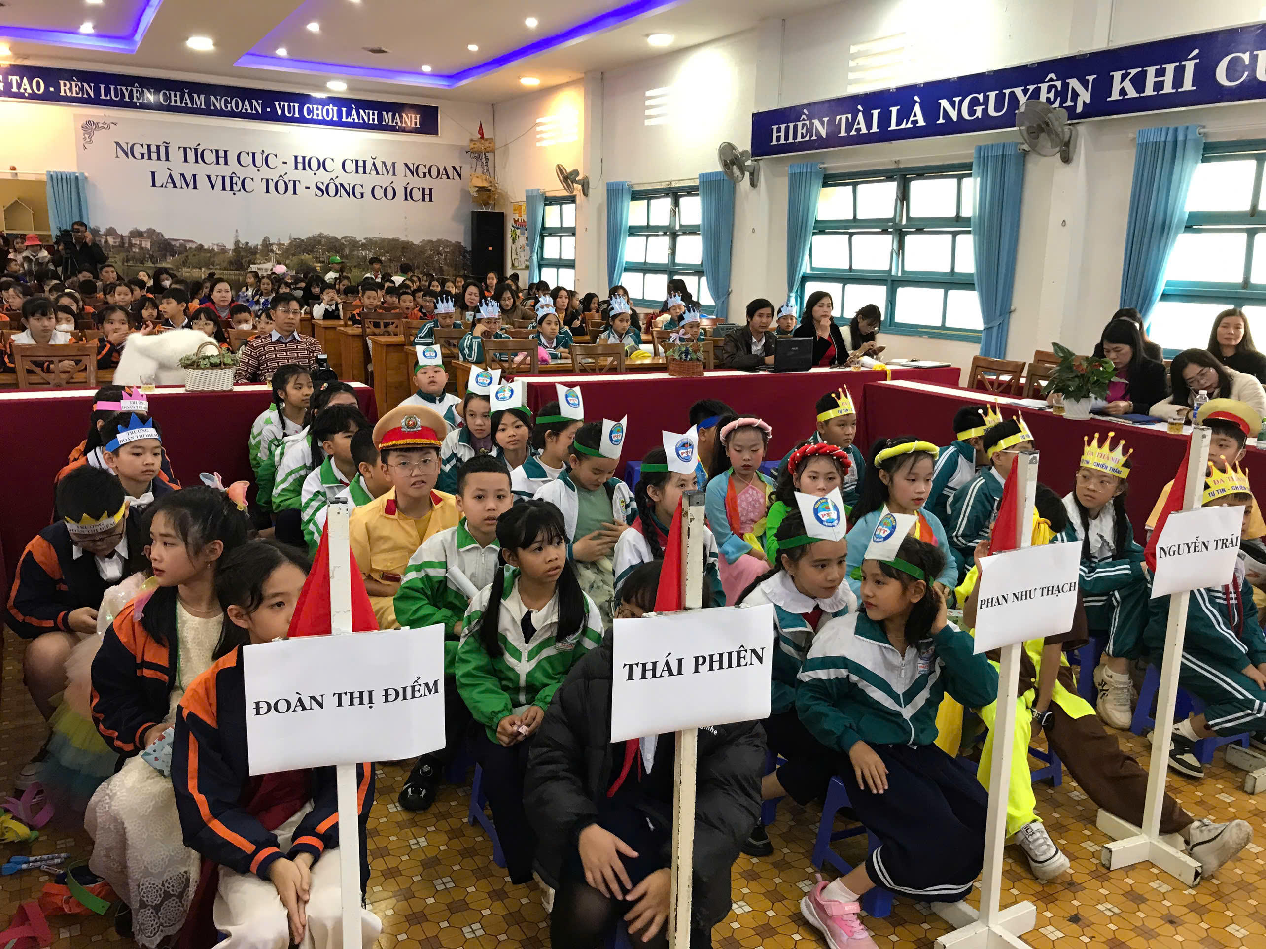 Đông đảo cổ động viên nhí là các em học sinh tích cực cổ vũ hội thi. |