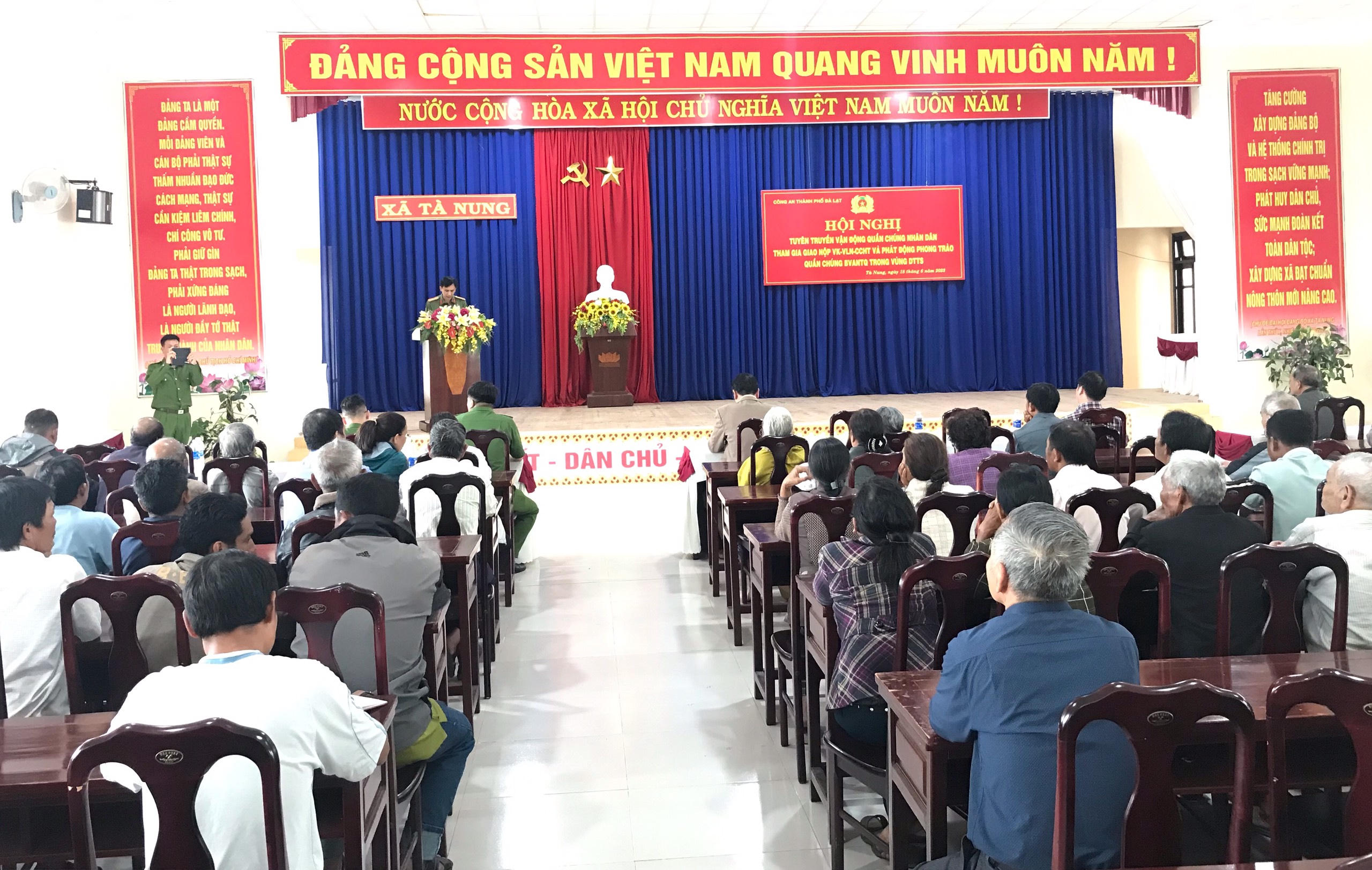 Cũng tại các buổi tuyên truyền, lực lượng công an đã phát động phong trào toàn dân tham gia bảo vệ an ninh tổ quốc, đặc biệt đối với người DTTS không tin, không theo lời kẻ xấu xúi giục, kích động. Đồng thời, Công an TP Đà Lạt cấp phát tờ rơi tuyên truyền phòng, chống mua bán, tàng trữ, vận chuyển VK-VLN-CCHT.
