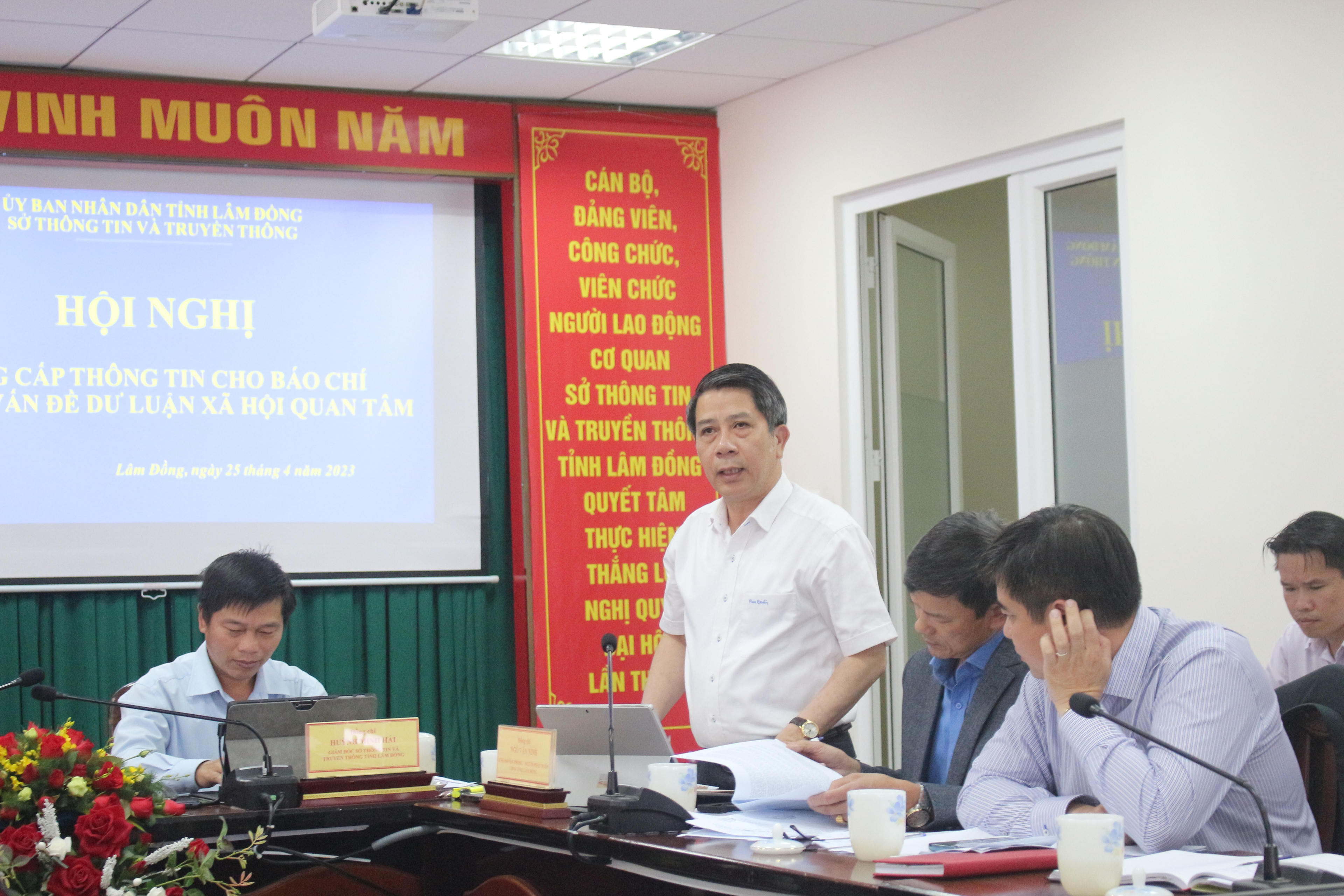 Ông Lê Quang Trung- Giám đốc Sở Xây dựng Lâm Đồng trả lời các câu hỏi báo chí. |