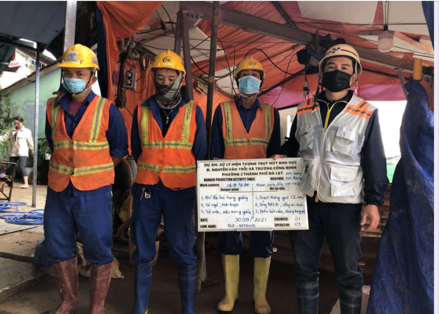 Các kỹ sư đến từ Nhật Bản phải theo dõi diễn biến địa chất dài ngày để đánh giá nguyên nhân sạt trượt trên đường Nguyễn Văn Trỗi. |