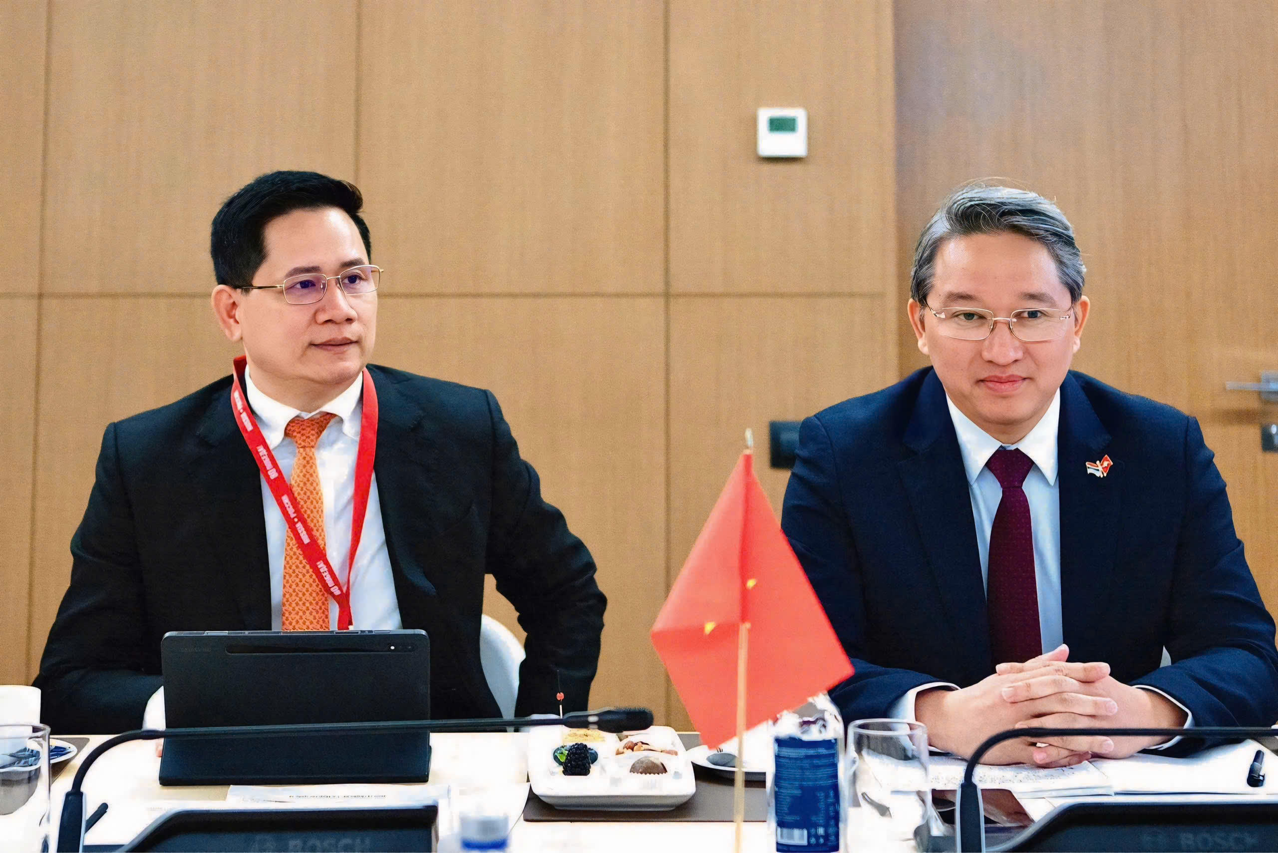 Bộ trưởng Bộ Tư pháp Nguyễn Hải Ninh và Vụ trưởng Vụ Hợp tác Quốc tế Nguyễn Hữu Huyên tại Hội đàm |