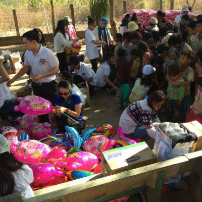 Món quà nào người dân cũng mừng, cũng thích, nhưng thích nhất là… bong bóng. Từng quả bóng bay đủ hình dạng, màu sắc được mô phỏng các nhân vật hoạt hình khiến đôi mắt những đứa trẻ lem luốc sáng hẳn lên. Và các ông bố, bà mẹ cũng hào hứng đi nhận bong bóng về cho con mình, còn vui hơn nhận sữa…