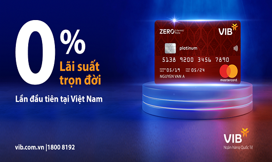 Đây là dòng thẻ tín dụng đầu tiên trên thị trường Việt Nam cho phép chủ thẻ được sử dụng nguồn vốn của ngân hàng với lãi suất bằng 0% trong suốt thời gian sử dụng thẻ. Đặc biệt, VIB cũng cho ra mắt phiên bản giới hạn – Limited Edition của dòng thẻ này cho 1.000 khách hàng đầu tiên, với thiết kế độc đáo, mạnh mẽ và sang trọng, khẳng định vị thế tiên phong của dòng thẻ Miễn lãi trọn đời – Zero Interest Rate tại Việt Nam.
