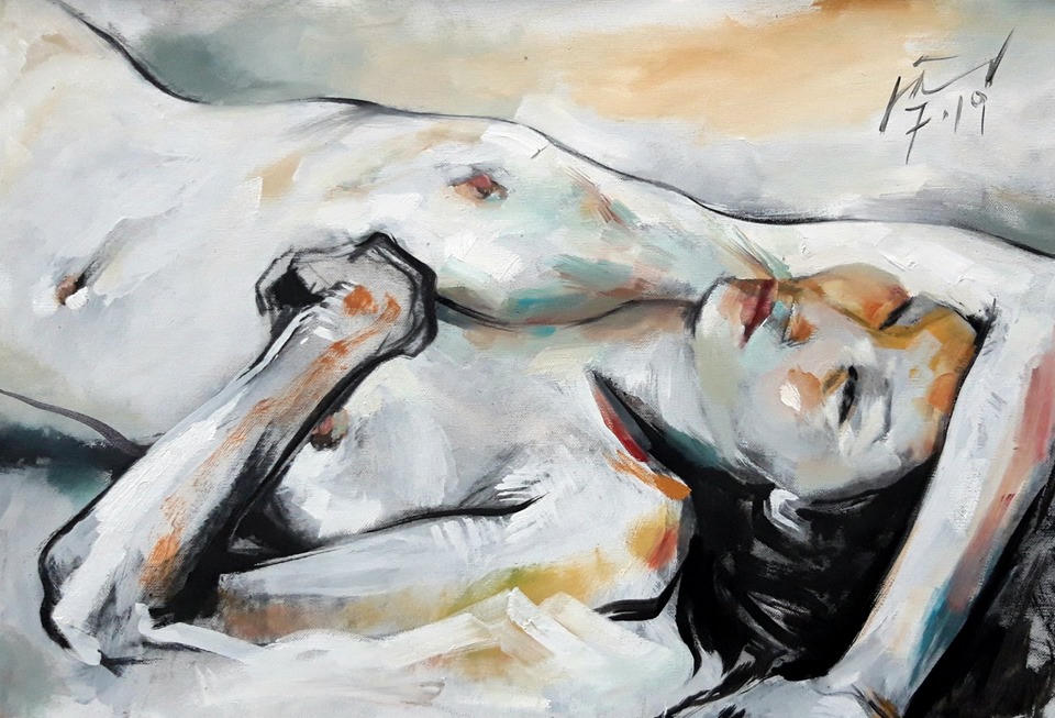 Họa sĩ Nguyễn Minh Tú khá phấn chấn khi bắt tay với các bức tranh mới của mình: “Skecth giúp tôi ghi lại và thể hiện những ý tưởng và quan điểm, sự trăn trở của mình trong cuộc sống tôi đang sống. Vì vậy tôi khá hứng thú với lời mời tham gia triển lãm lần này. Tôi đã tận dụng các mảnh bìa hay giấy in …để tạo nên tác phẩm, trong đó điểm nhấn là chân dung con người. Tất cả được hòa lẫn nhưng lại đối lập giữa một thành phố đông đúc và sự cô đơn trong sâu thẳm tâm hồn mà chúng ta đang sống”.