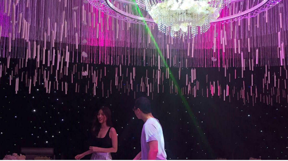 Thay vì vội vã, tất bật cho ngày trọng đại, cặp đôi lại tỏ ra rất thoải mái và hạnh phúc ôm vai nhau khi theo dõi quá trình hoàn thiện không gian tiệc cưới. Bên cạnh đó, cả hai cũng cùng nhau tập dượt cho một tiết mục đặc biệt sẽ biểu diễn vào tối nay.