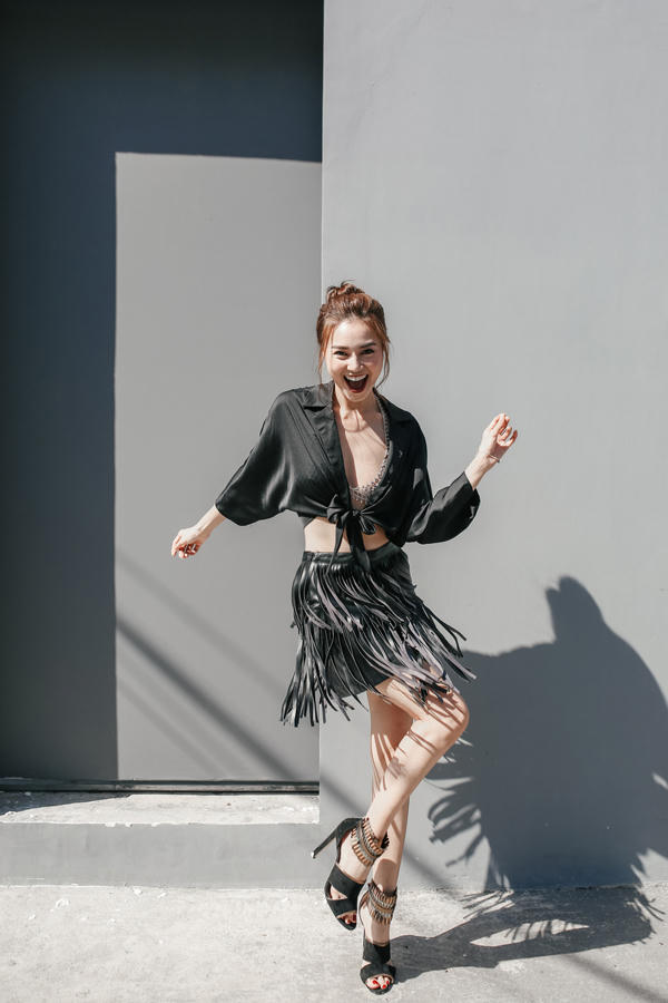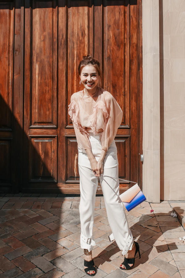 Jumspuit, quần loe, váy tua rua, chân váy dập ly theo đúng xu hướng thịnh hành của mùa mốt năm nay được mix-match một cách hài hòa để nữ diễn viên trở nên nổi bật.