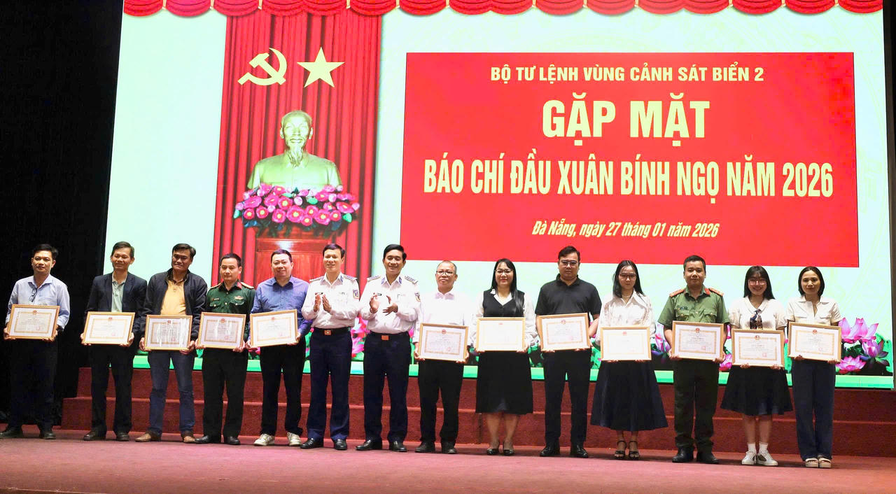 Nhân dịp này, Bộ Tư lệnh Vùng Cảnh sát biển 2 đã ký kết kế hoạch phối hợp tuyên truyền năm 2026 với các cơ quan báo chí trên địa bàn; đồng thời trao Giấy khen cho 13 tập thể và 18 cá nhân, trong đó có Báo Pháp luật Việt Nam với nhiều đóng góp tích cực trong công tác tuyên truyền, góp phần lan toả hình ảnh đẹp của lực lượng Cảnh sát biển Việt Nam trong đời sống xã hội.