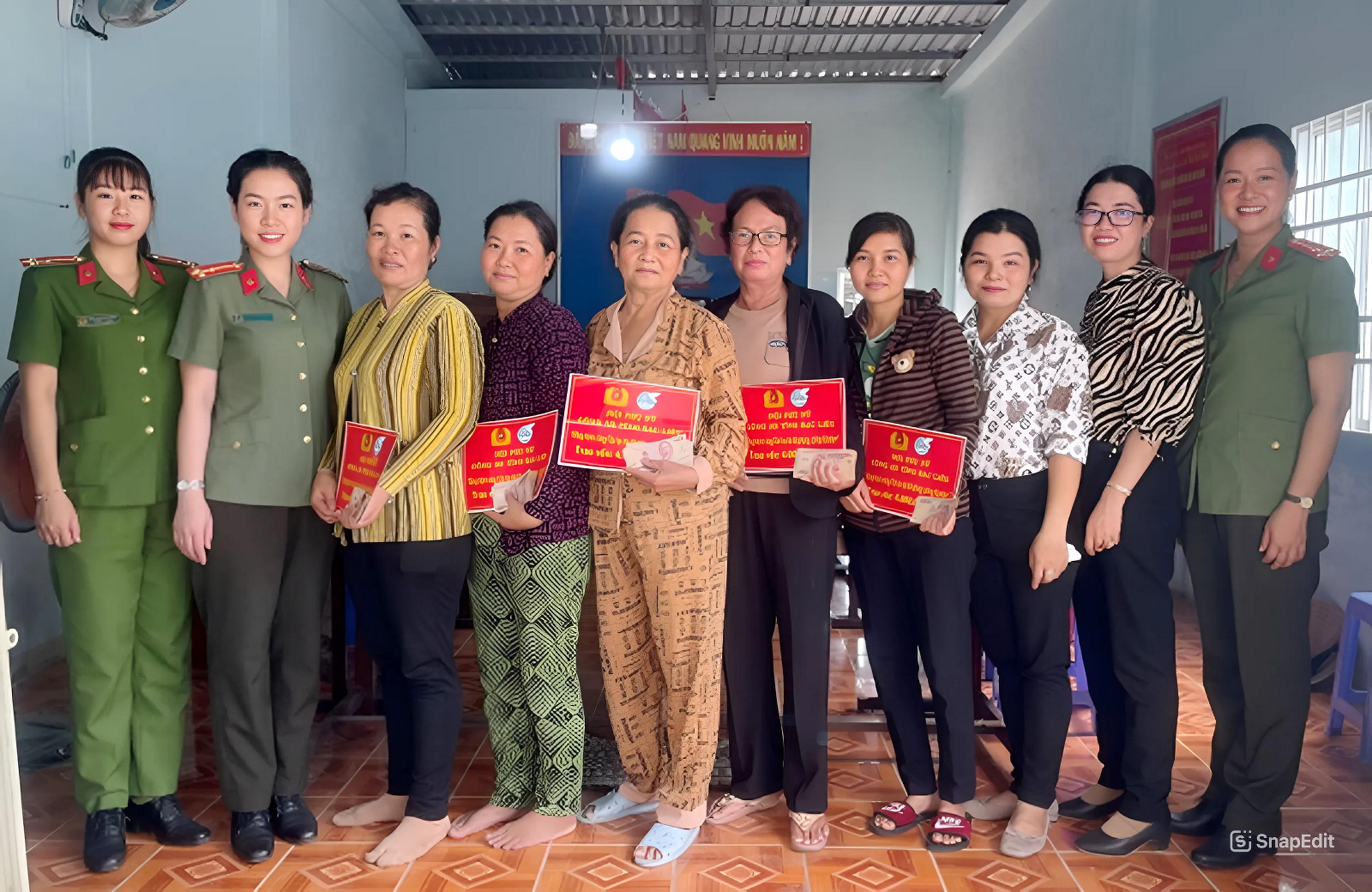 Phụ nữ Công an tỉnh Bạc Liêu hỗ trợ vốn cho chị em phụ nữ có hoàn cảnh khó khăn là thành viên câu lạc bộ “Nữ phòng, chống tội phạm”. |