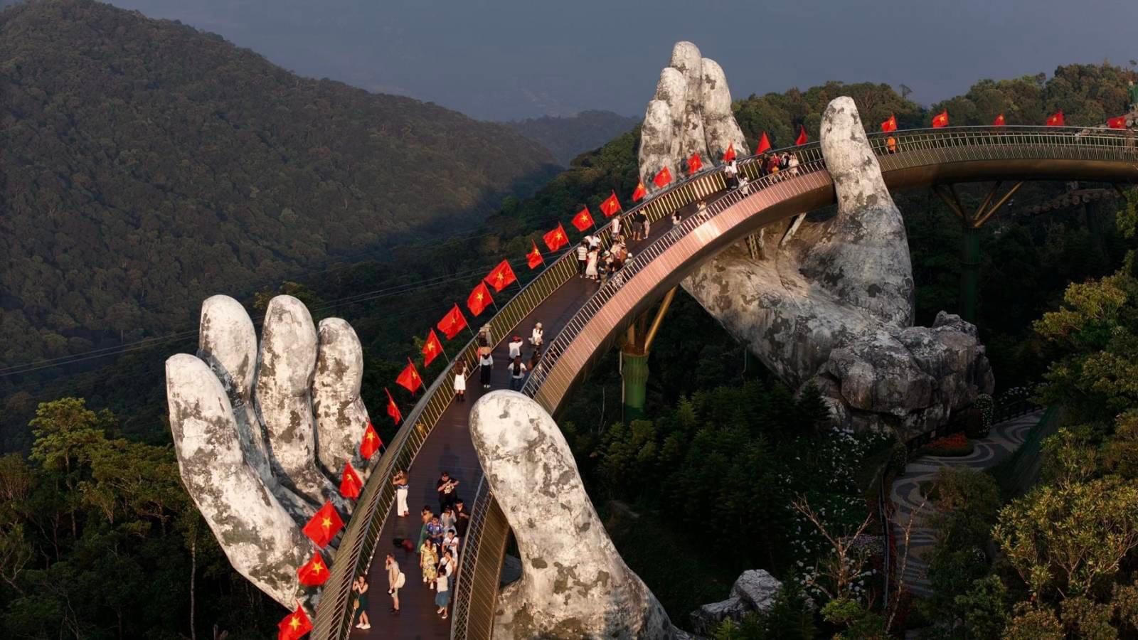 Các địa danh du lịch tại Đà Nẵng cũng rợp trời cờ đỏ. (Ảnh: Facebook). |