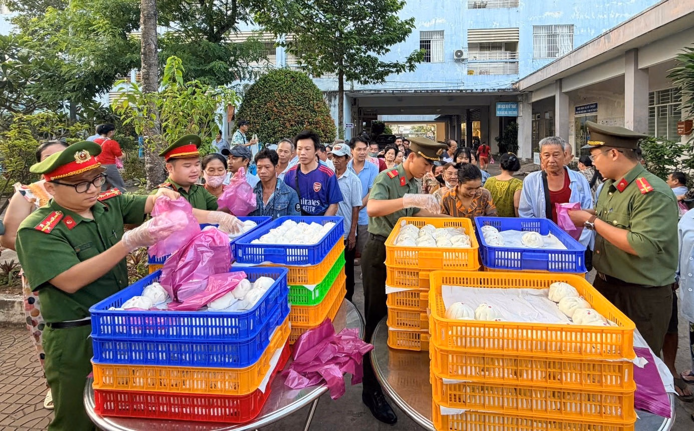 (PLVN) - Sáng 25/4, Ban Thanh niên Công an tỉnh An Giang phối hợp cùng nhóm thiện nguyện Gieo mầm yêu thương tiếp tục tổ chức chương trình “Buổi sáng nghĩa tình”, trao tặng 600 suất ăn miễn phí cho bệnh nhân nghèo và người nhà bệnh nhân tại Bệnh viện Y dược Cổ truyền Kiên Giang.