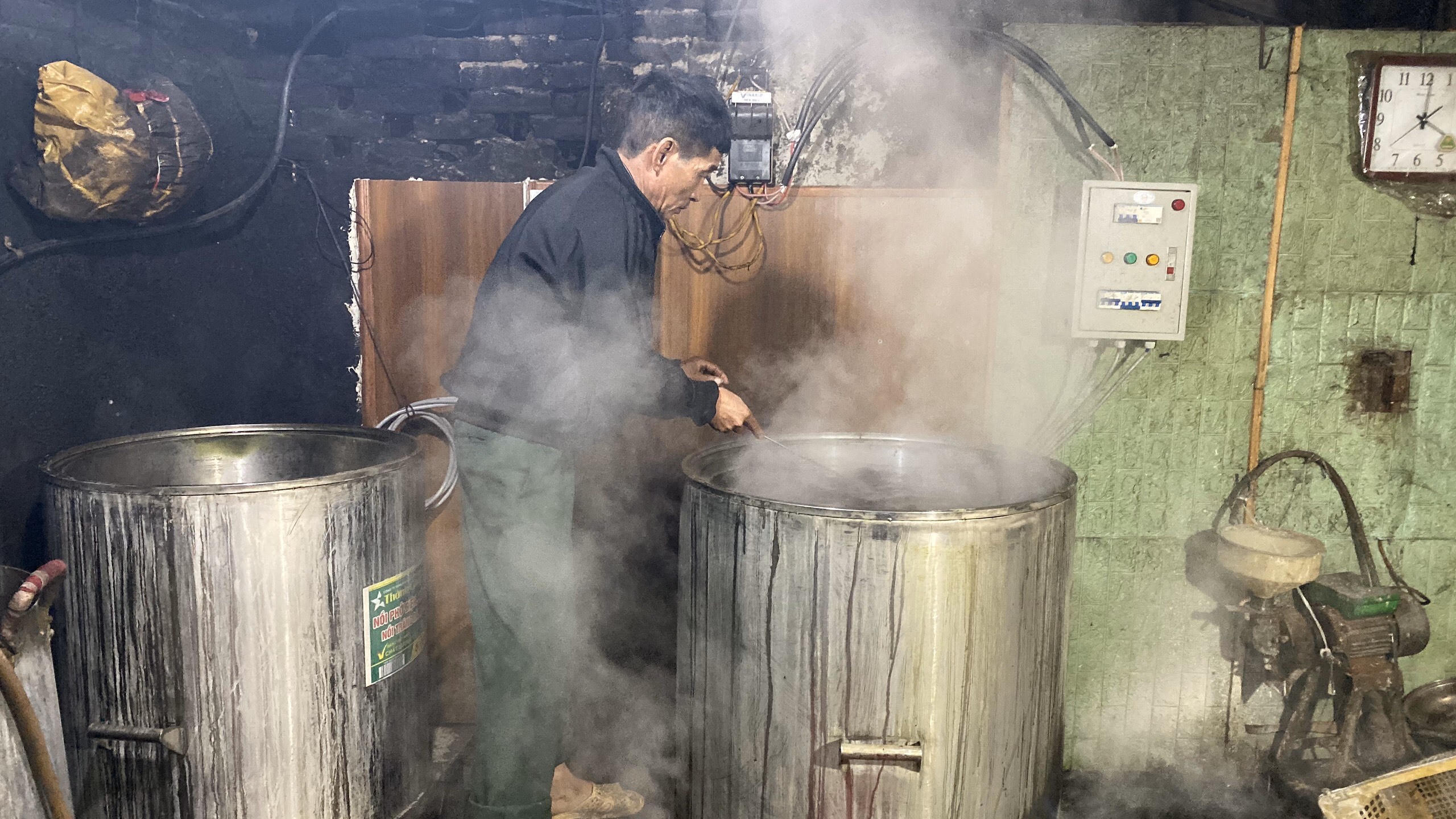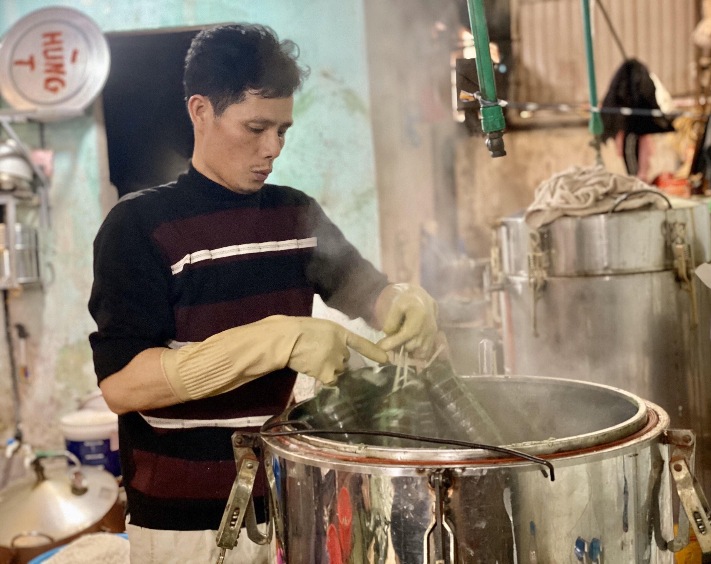 Nhanh tay vớt những chiếc bánh vuông vắn, vừa chín để kịp giao cho khách hàng, ông Phan Bá Cường (sinh năm 1977, con trai cụ Hiền) chia sẻ: “Những ngày thường, gia đình tôi làm bán cho những người bán buôn, bán lẻ tại các nhà hàng, chợ trên địa bàn tỉnh Vĩnh Phúc và giao cho một số tỉnh thành khác. Nhưng từ 15/12 âm lịch đến Tết Nguyên đán, nhu cầu sử dụng, đặt bánh tăng gấp 3-4 lần, trung bình mỗi ngày, nhà tôi xuất ra thị trường trên 1.000 chiếc bánh.
